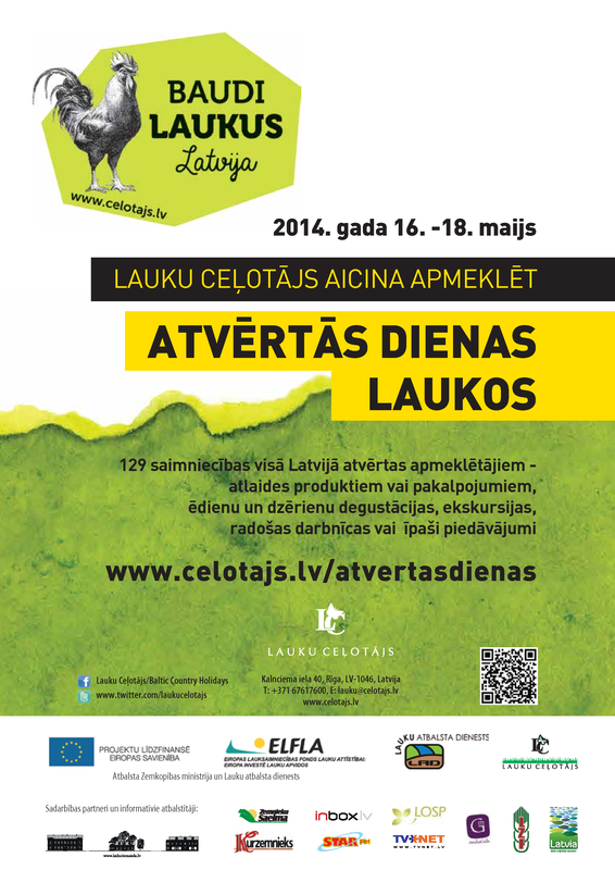 Lauku ceļotājs aicina jūs piedalīties pavasara akcijā "Atvērtās dienas laukos", kas notiks 2014. gada 16. - 18. maijā (www.celotajs.lv/atvertasdienas).