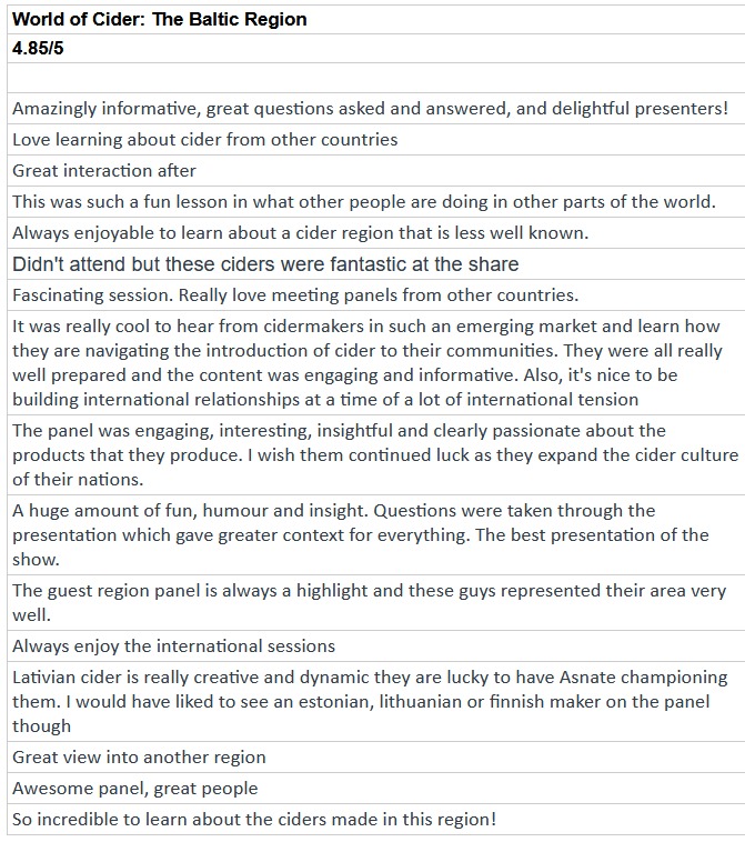 Feedback on Baltic Cider: