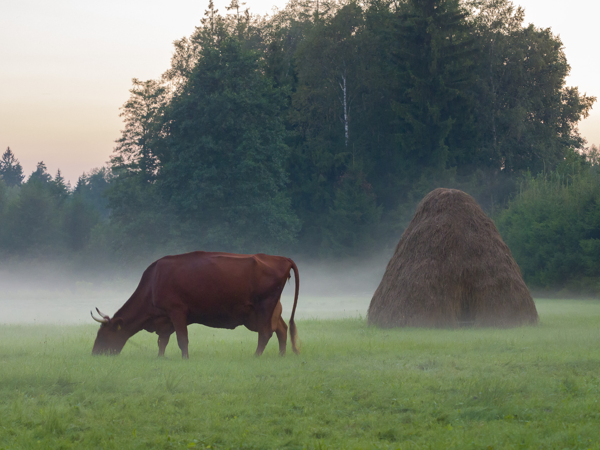 Латвийская бурая корова на пастбище. Фото: Валдис Ошиньш